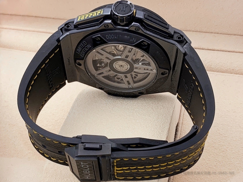 | 說明: | 黑陶瓷材質 鈦金屬鍍黑側邊 造製錶殼~原廠黑色碳纖維錶框~鏤空面盤~藍寶石水晶鏡片~搭載 HUB 1241自動上鍊機蕊~透明錶背~搭配HUBLOT原廠黑色車黃線皮帶~原鈦金屬+碳纖維摺疊扣 |