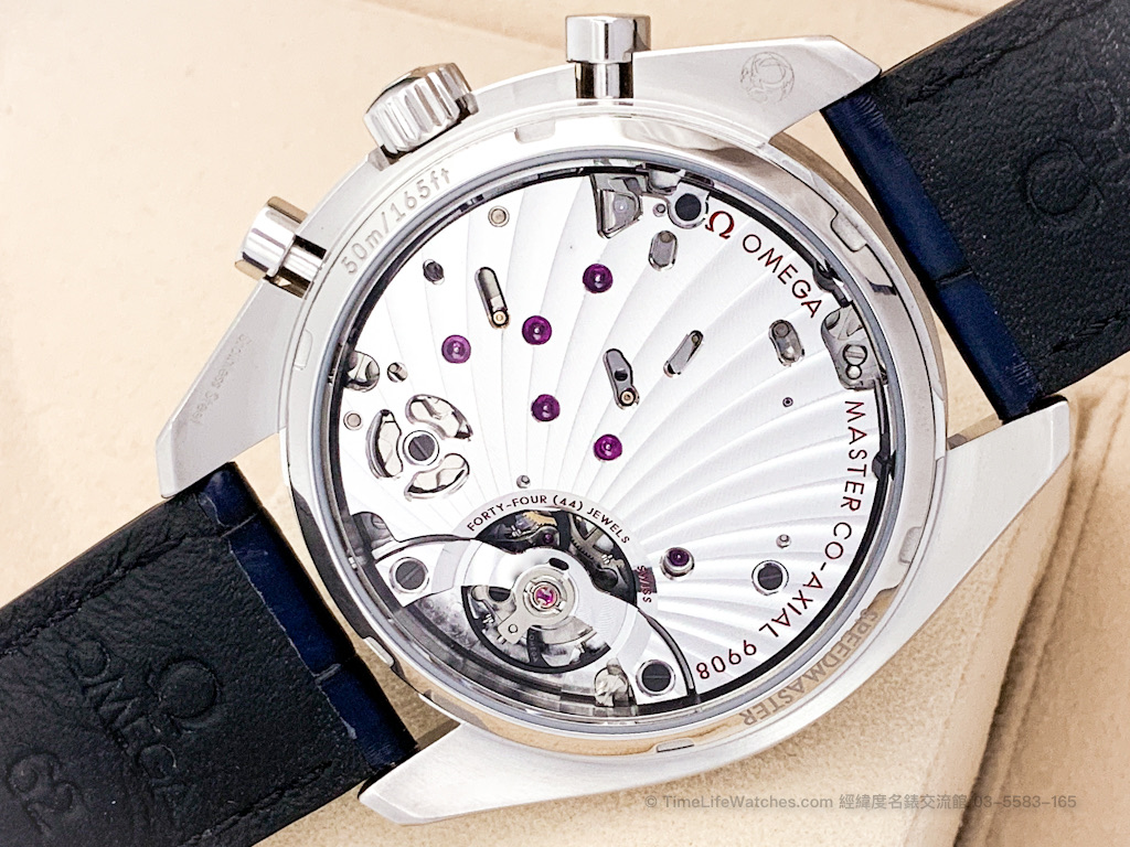 此錶搭載手動上鍊的歐米茄9908同軸擒縱機芯,機芯經過瑞士METAS嚴格認證,抗磁性能達15,000高斯,動力儲存高達60小時,走時精準且穩定可靠。透過透明藍寶石水晶底蓋,機芯內部精緻的日內瓦波紋、黑化螺絲及精美打磨清晰可見。