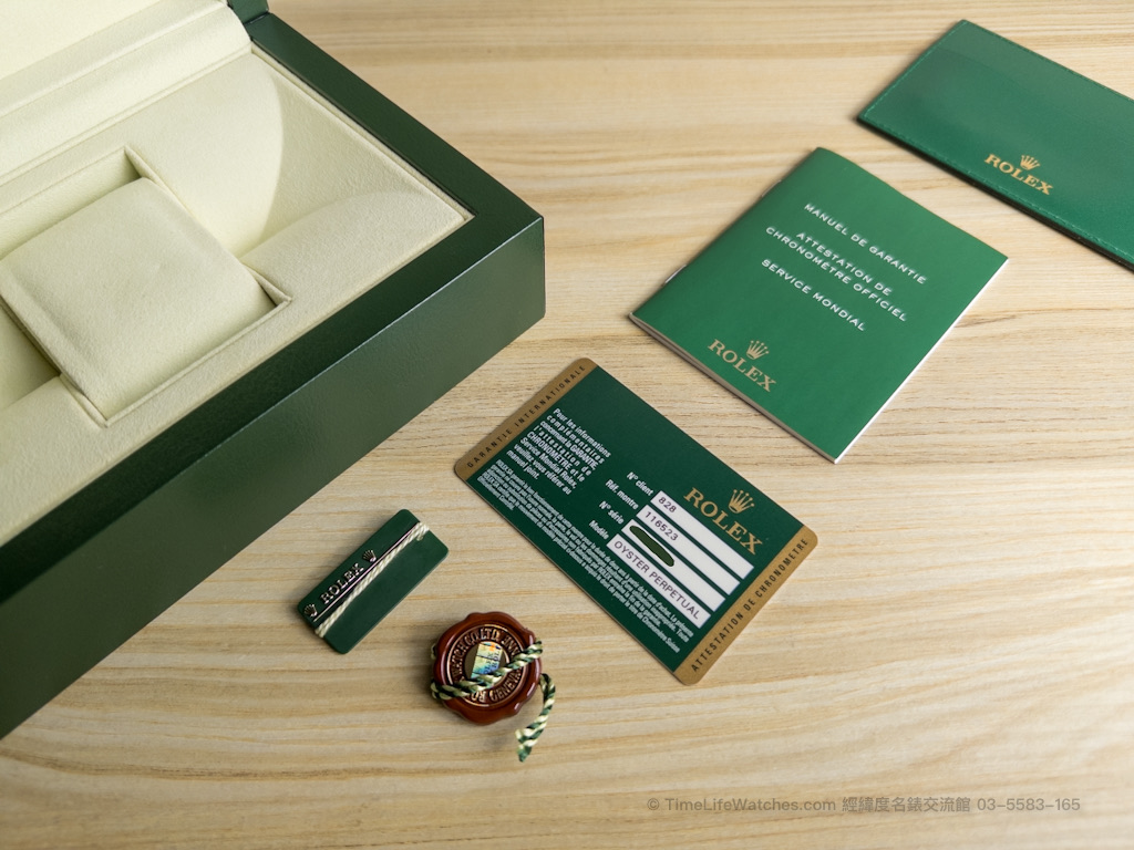 | 配件: | 保單(2014-08)、盒子、錶節(12+1微調)、保固手冊、卡片皮夾、紅圓牌、綠方牌 |