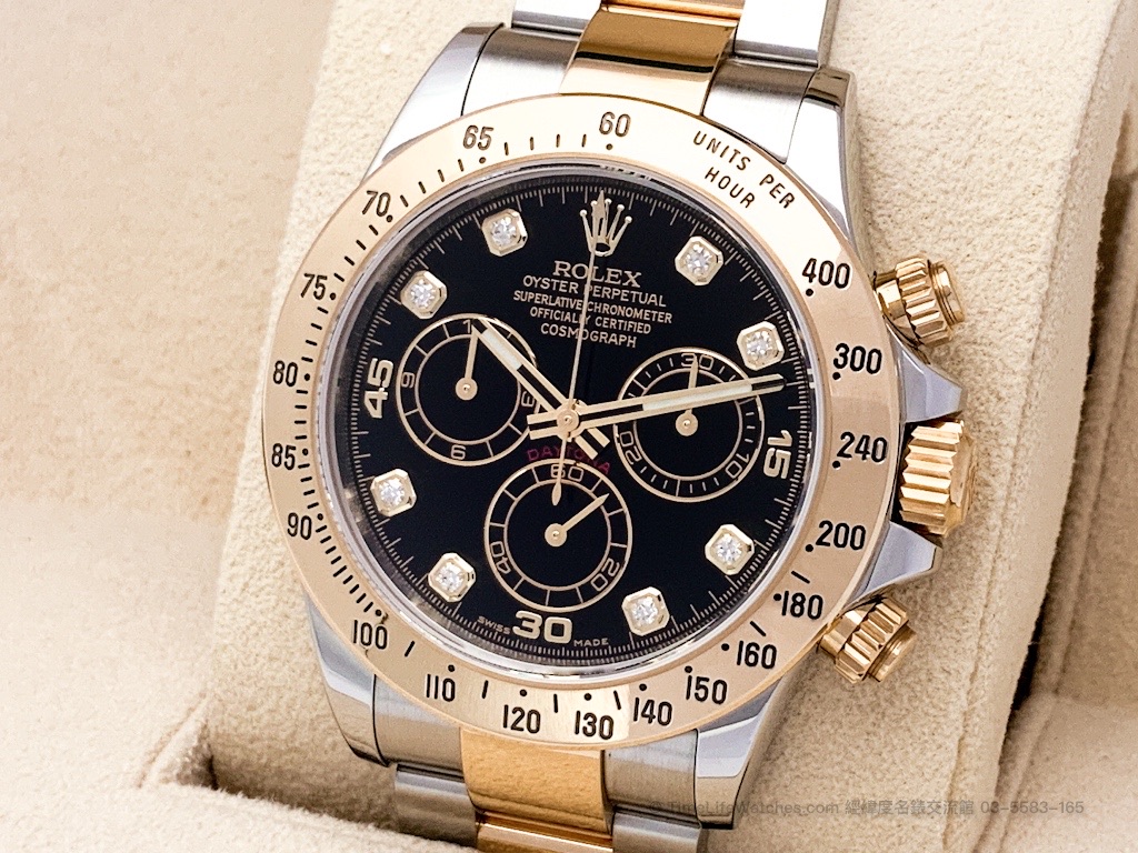 ROLEX 勞力士 Daytona 116523 黑色錶盤 鑽石時標 自動上鍊 40mm