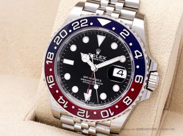 GMT-Master II 126710BLRO 以標誌性的藍紅雙色 Cerachrom 陶瓷外圈聞名,象徵白晝與夜晚的時區分界。自 2018 年問世以來,此款被收藏界暱稱為「Pepsi 百事圈」,是 GMT 系列中最具辨識度的現代代表作。
