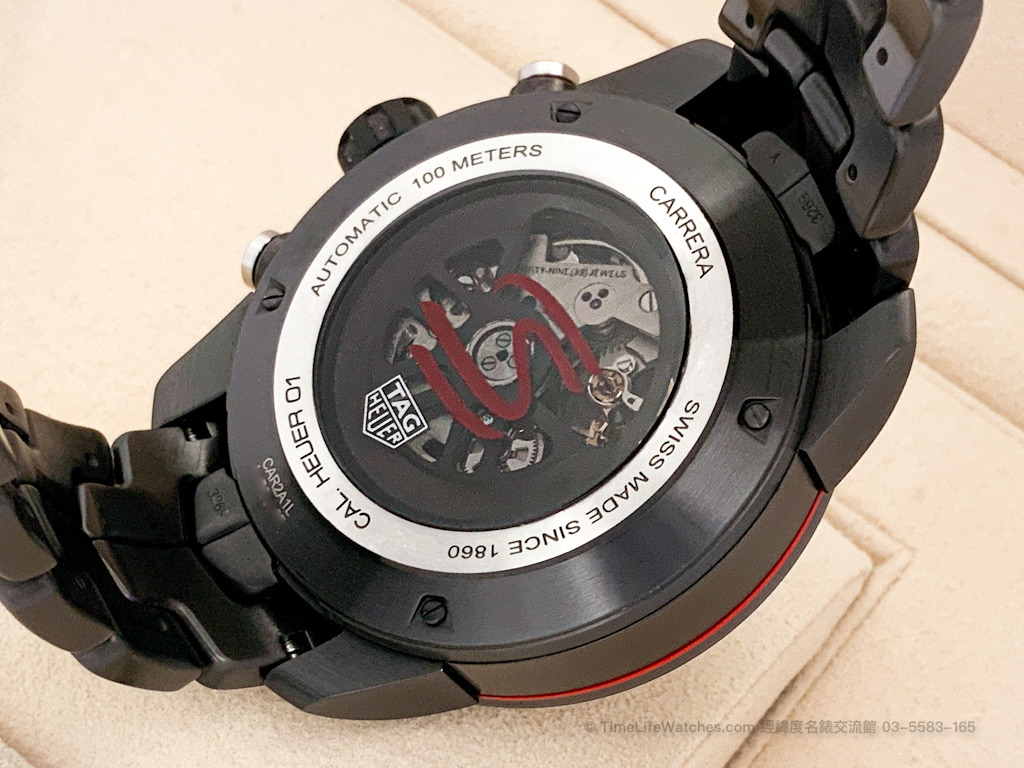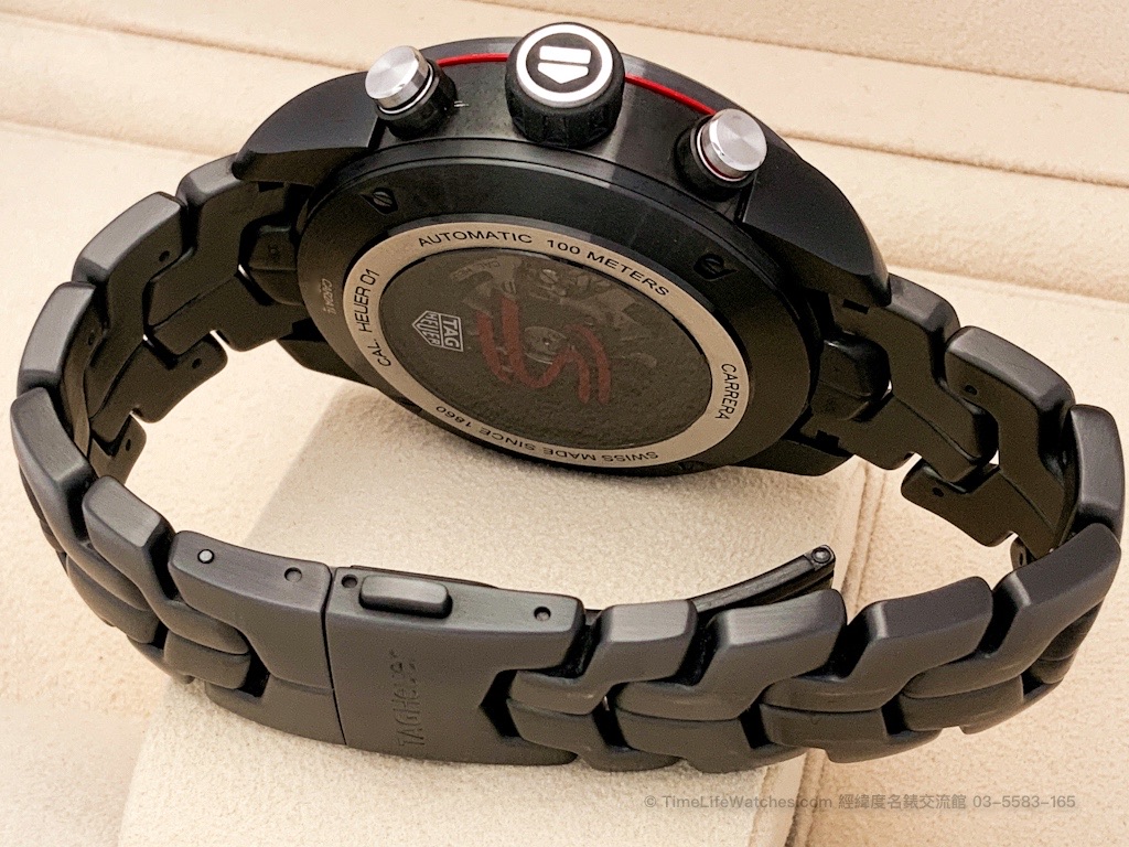 | 說明: | 不鏽鋼PVD黑材質造製錶殼~黑色陶瓷測速錶框~黑色裸空面版裝飾洗拿車隊標誌~藍寶石水晶鏡片~搭載Calibre Heuer 01 自動上鍊機芯~搭配原廠不鏽鋼PVD黑材質鍊帶 |