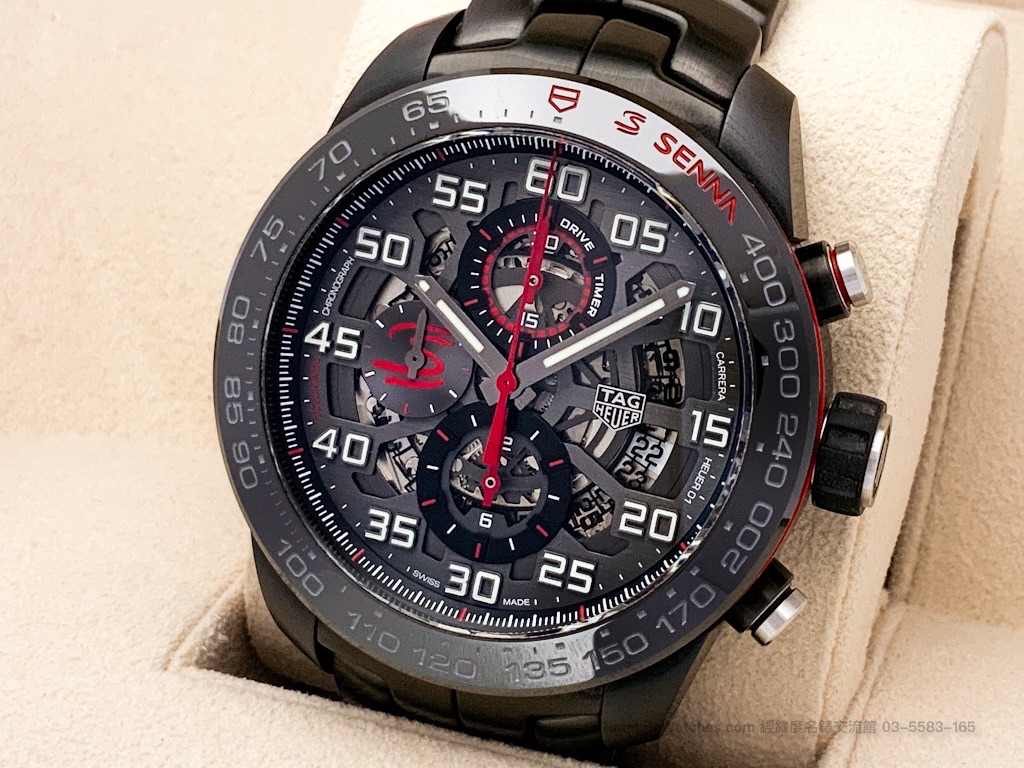 TAG HEUER 豪雅 Carrera Senna CAR2A1L.BA0688 黑色鏤空錶盤 黑陶瓷外圈 計時 自動上鍊 45mm