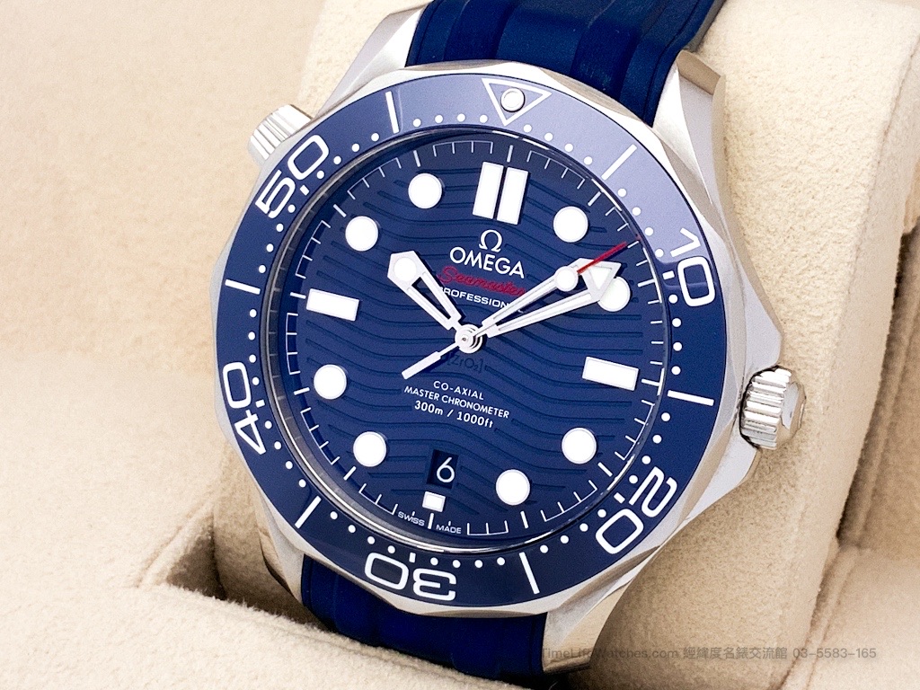 OMEGA 歐米茄 Seamaster Diver 300M 210.32.42.20.03.001 藍面波浪紋 藍陶瓷圈 藍膠帶 自動上鍊 42mm