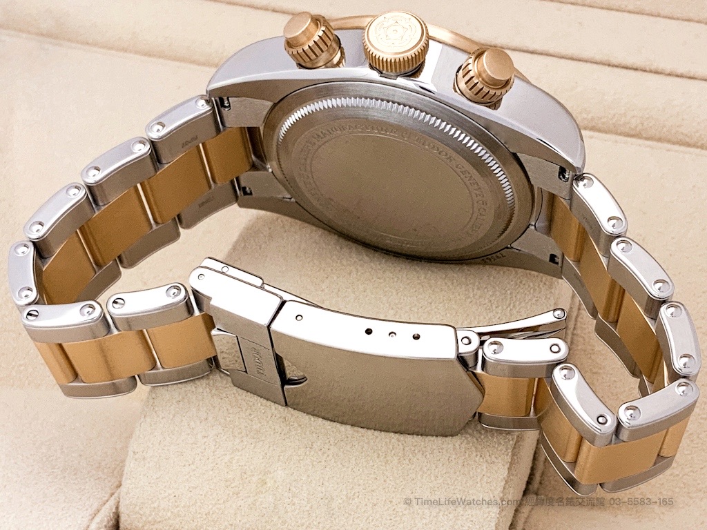 Black Bay Chrono S&G 以黑金對比與強烈光影層次,重現帝舵在計時領域的復古美學,是兼具風格與機械實力的實用型半金運動錶款。