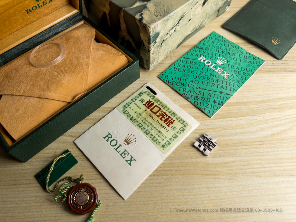 | 配件: | 保單、盒子、錶節(22)、紅圓牌、原始綠方牌、翻譯本、保單皮套 |
