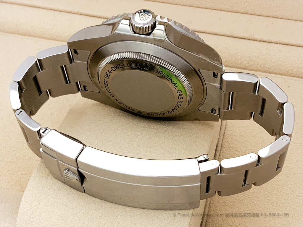 Oyster 錶殼結合排氦氣閥門設計,是 Sea-Dweller 系列的重要特徵之一。搭配 Oyster 三板帶與 Oysterlock 安全摺疊扣,並配置 Glidelock 延展系統,可快速微調錶帶長度,提供穩固且舒適的佩戴體驗。